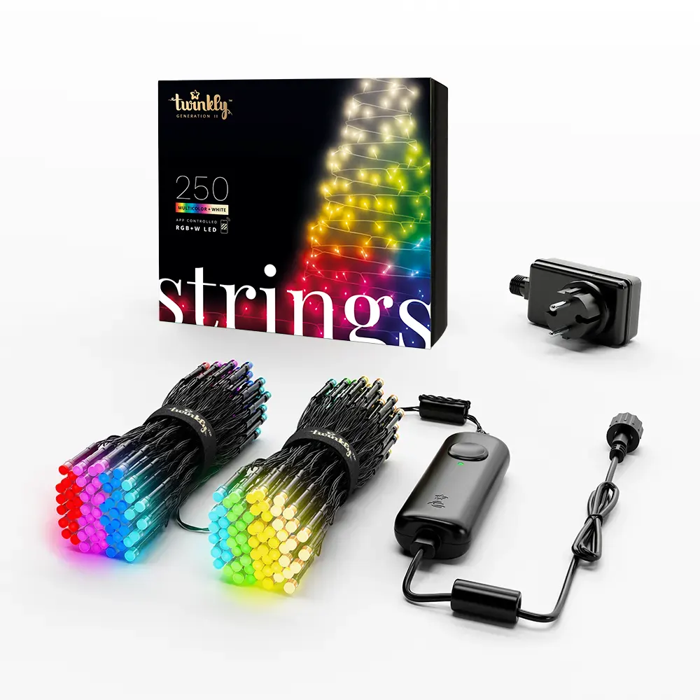 Twinkly Strings to sznur 250 kolorowych diod LED RGB+W, kontroler z połączeniem wifi, bluetooth oraz najnowocześniejsza aplikacja na smartfona. Wszystko razem pozwala na łatwe i szybkie tworzenie niesamowitych animacji!