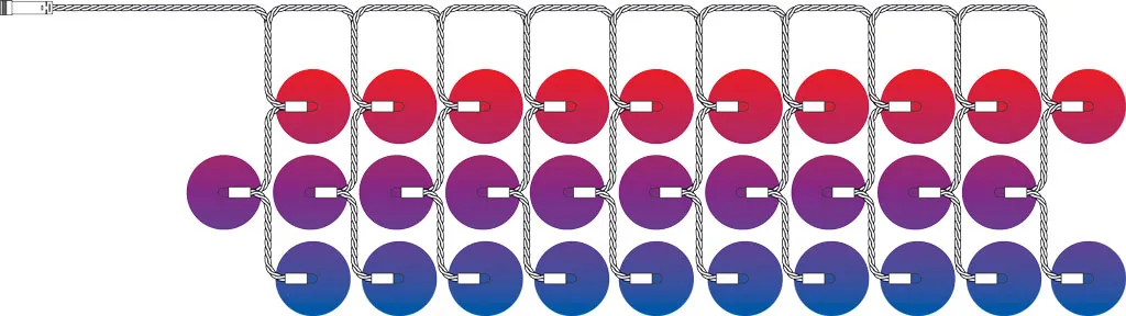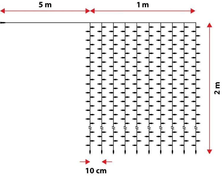 - Kurtyna 1 m (szer.), 2 m (wys.), 250 pikseli LED